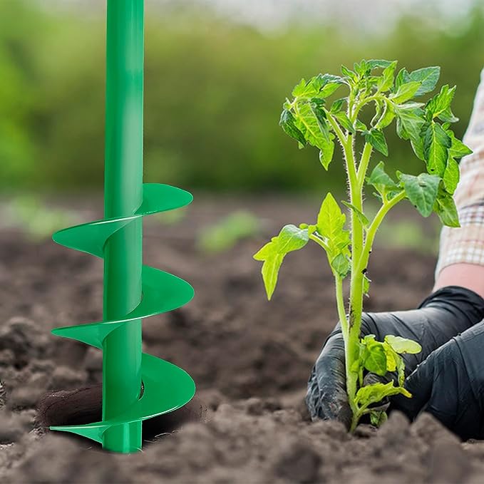 - 🌱【High Quality】The graden auger bit is maded of high quality steel, green paint, non-slip hexagonal drive, and has the characteristics of wear-resistant, strong and durable. The point on the auger bit rotates at high speed, first breaking through the solid surface of the ground, and then pushing steadily and forcefully into the ground.
