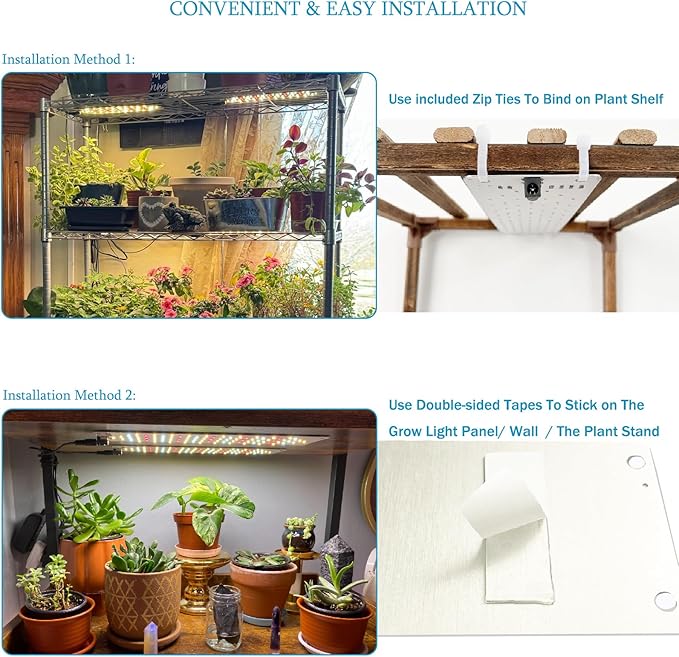 - Minimalist heat dissipation design & Easy to Use: The grow light 11.81'' x 3.14'' plant lamps are made of pure aluminum alloy with excellent heat dissipation,grow lights for indoor plants full spectrum Ideal for indoor use on plant shelves, cabinets, walls and other places.grow lights for indoor plants Installing our plant light is simple, with Double-sided Tapes * 10pcs and Durable zip ties with 16pcs make the grow lights can use anywhere indoors at ease