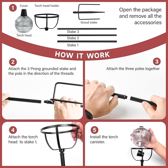 - 【Decoration & Entertainment】The outdoor torches ideal for backyard decoration and lawn lighting. It is very suitable for terrace tropical theme parties, beach or jungle theme parties, outdoor concerts and Christmas Party. Make your party romantic and warm.