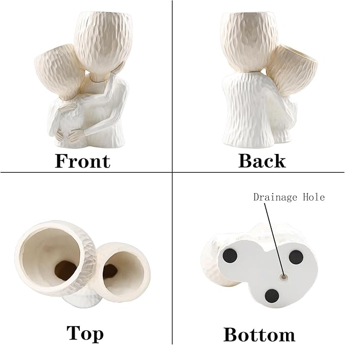 Head Planter for Indoor Plants Face Flower Pots Outdoor Plant Accessories Mug Succulent Planters with Drainage Hole Husband Hug Wife