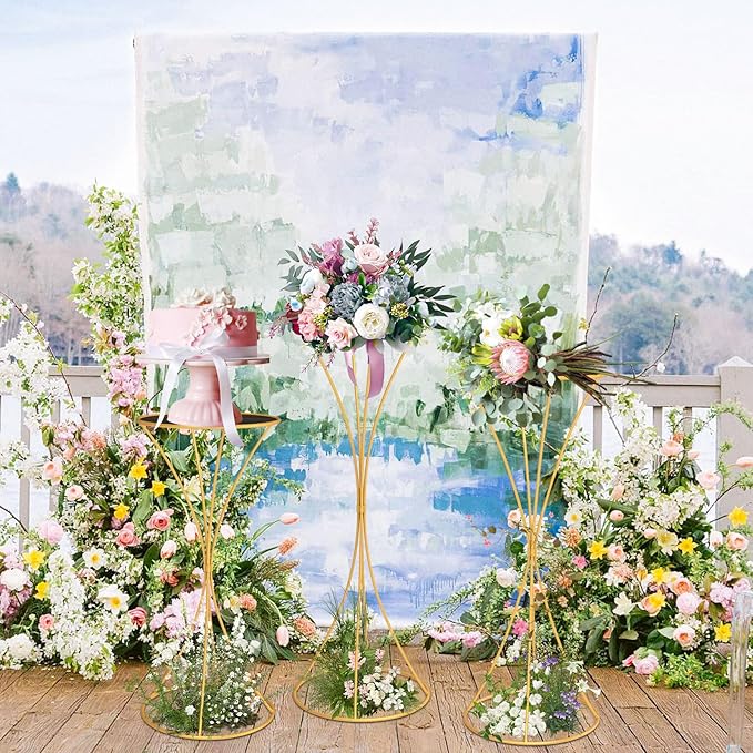 - PERFECT FOR MANY OCCASIONS - The gold metal plant stand set is elegant and luxurious, which makes it an ideal decoration for weddings, table centerpieces, road signs, birthday parties, anniversaries, and ceremonies. At the same time, it can also be used for decoration of daily occasions, such as living room, bedroom, fireplace, office, formal dining room, etc. You can also place different decorations on the vase stand according to different occasions or themes.