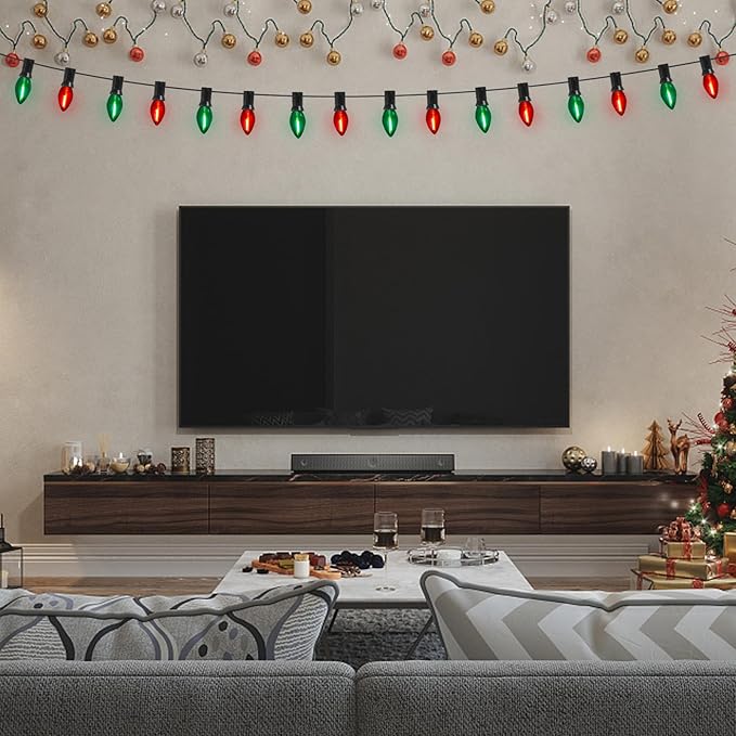 - Old-fashioned Christmas lights: Clear red/green incandescent lights and green lines look more restored to natural and original colors. So its light is soft, which obviously makes our holiday environment comfortable and pleasant. Perfect for decorating your home, Christmas, holidays, winter, shops, backyards, gardens, courtyards, walls, gates, yards, Christmas trees, Windows, parties and every occasion before Christmas.
