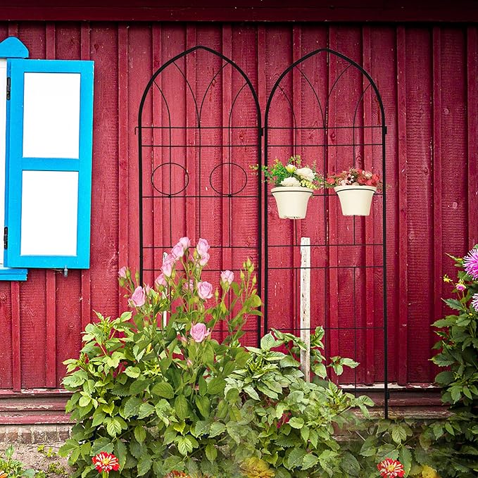 - PLANTS SUPPORTING TRELLIS: This metal garden trellis is perfect for supporting all kinds of flowering trellis plants, wall-climbing vines. It allows them to grow naturally up towards the top.
