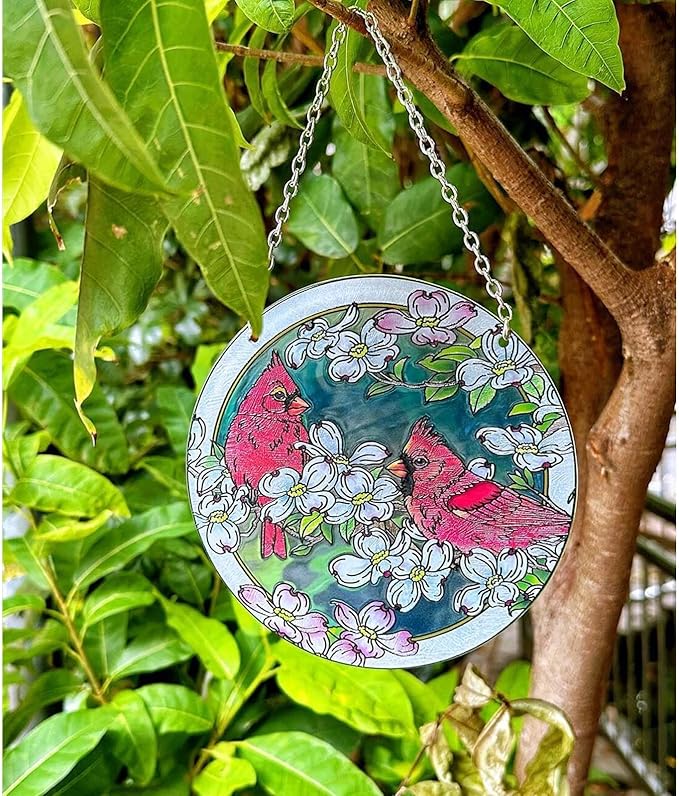 - 【Stained glass】Our Cardinal suncatchers is made of 100% transparent Stained Water America Textured Glass, not Acrylic/plastic, etc material. Exquisite tiffany technology vibrant the glass and adds brilliance to the decor, stained glass reflects and illuminates beautifully in the sunlight,