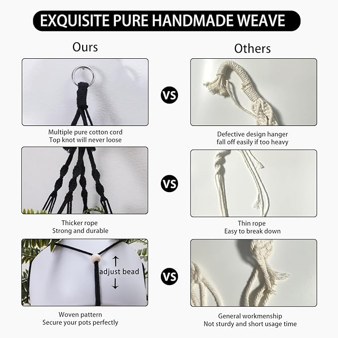 - SERVICE & HIGH QUALITY - You can get black plant hangers and hooks. If you have any questions before or after the purchase, feel free to contact us. Please kindly note that the length will shorten depending on the size of the pot, enjoy your life with this product now
