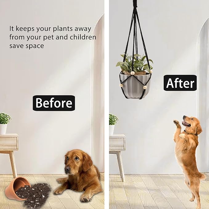 - ADJUSTABLE WOOD BEADS - You can easily adjust it by moving the wooden beads up and down to perfectly fix the pots. You can hang macrame plant hanger in your living room, hall, office ceiling and anywhere you like. Kids and pets can no longer mess up your potted plants