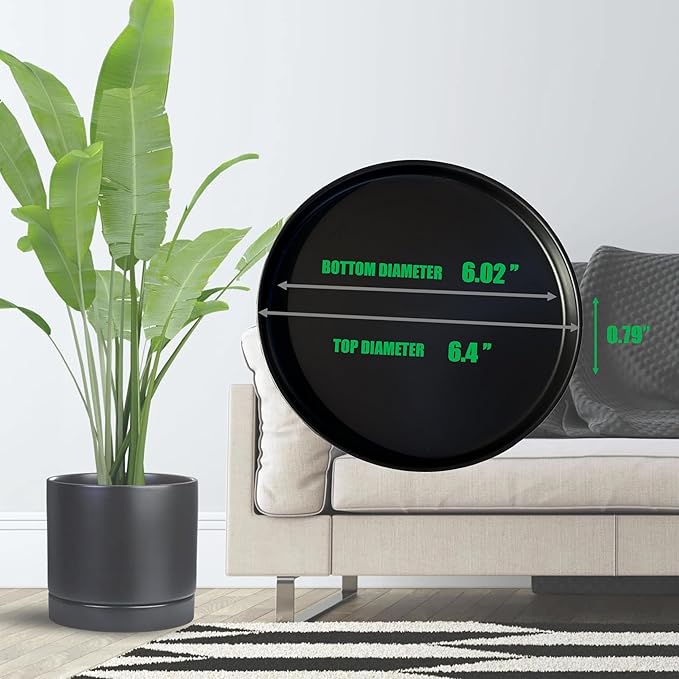2 Pack Ceramic Plant Saucer Pot Tray 6 Inch, Planter Saucers 4 5 6 7 8 9 10 11 12 13 Inch for Indoors Outdoor, Durable Sturdy Flower Drainage drip Water Tray for Glazed Pots Base (6.4 Inch-Black)