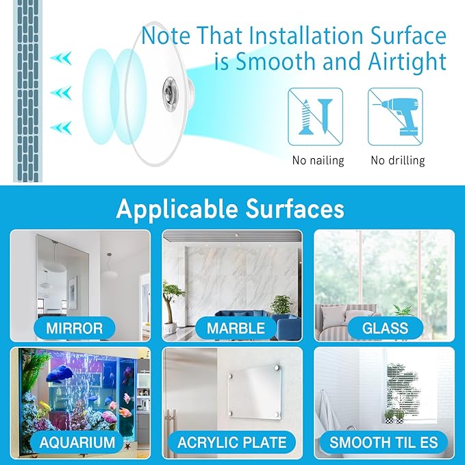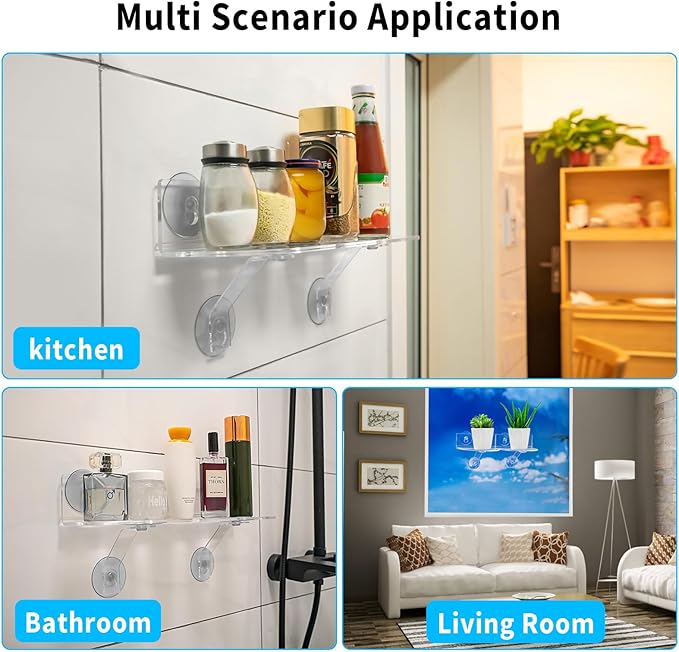 - EASY TO ASSEMBLE : After cleaning the surface with alcohol or a clean towel, the suction cup shelf can firmly adhere to glass, mirrors, and smooth tiles. It's a great suction cup shelf saving wall organizer