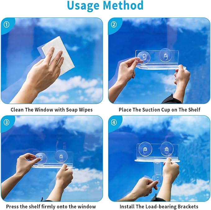 - MORE STRONG CONSTRUCTION:Our window plant shelf is made of 5mm thick, high-quality transparent acrylic and minimalist design, keep your window view while safely fixing objects. And each of our window sill suction cup planters comes with a load bearing bracket for greater support and stability
