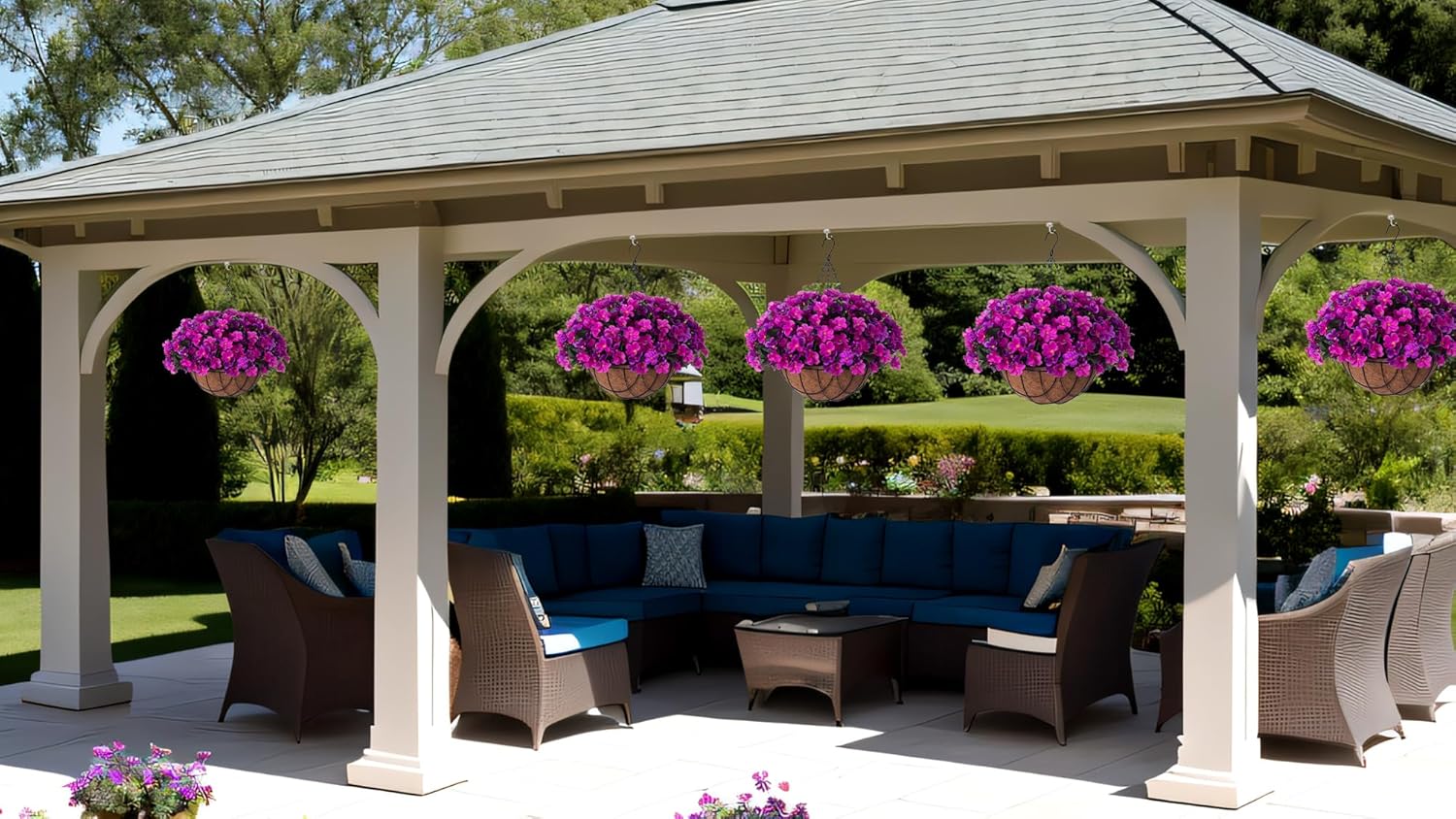 - Lifelike Artificial Greenery: This artificial flowers in hanging basket boasts a realistic appearance, making it an ideal choice for enhancing your home, garden, yard, patio, balcony - both indoors and outdoors