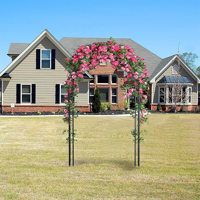 - 【A Plant Climbing Base】Featured with a mounting-plant-friendly shape, your vines, foliage, roses will happily find themselves flourish and bloom on this arch pergola.Straight standing arbor with lush green and intoxicating flowers on it, just can’t find anything better than this pastoral decoration.Whether It is Sunny or Rainy and Windy, It is Very Firm.