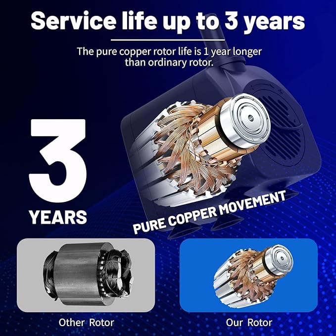 - 【Over Heating Protection】Considering that the users will forget to add water, we have added a temperature control protection switch inside the pump. When the pump is running-dry, it will automatically cut off the power when the temperature of pump is high,360-hour dry burnning protection,Don't worry that there is no water in your fountain, which will cause the pump to burn out.