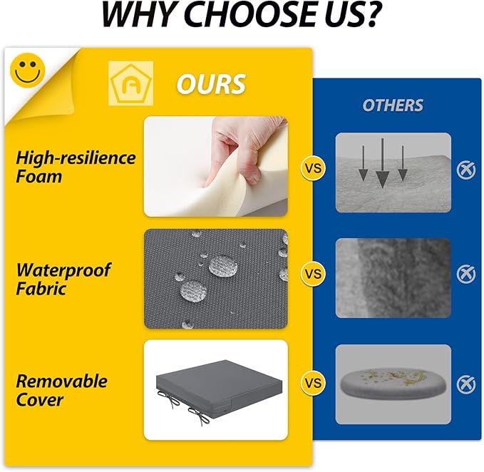 - Wide Use & Tips: These outdoor dining chair cushions fit pools, patios, balconies, decks, backyards, and gazebos. Foam inserts and covers are packed separately in bags and placed in one box—check all parts. Easy assembly required