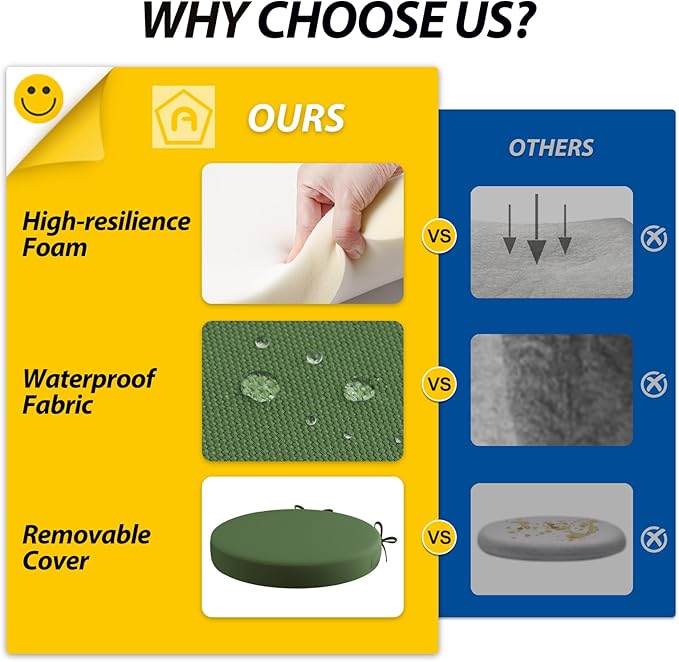 - Wide Use & Tips: These outdoor dining chair cushions fit pools, patios, balconies, decks, backyards, and gazebos. Foam inserts and covers are packed separately in bags and placed in one box—check all parts. Easy assembly required