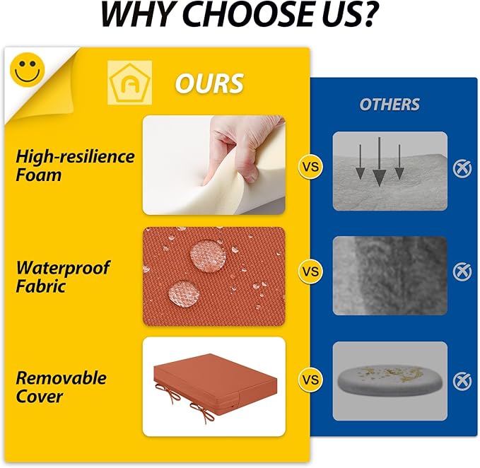 - Wide Use & Tips: These outdoor dining chair cushions fit pools, patios, balconies, decks, backyards, and gazebos. Foam inserts and covers are packed separately in bags and placed in one box—check all parts. Easy assembly required