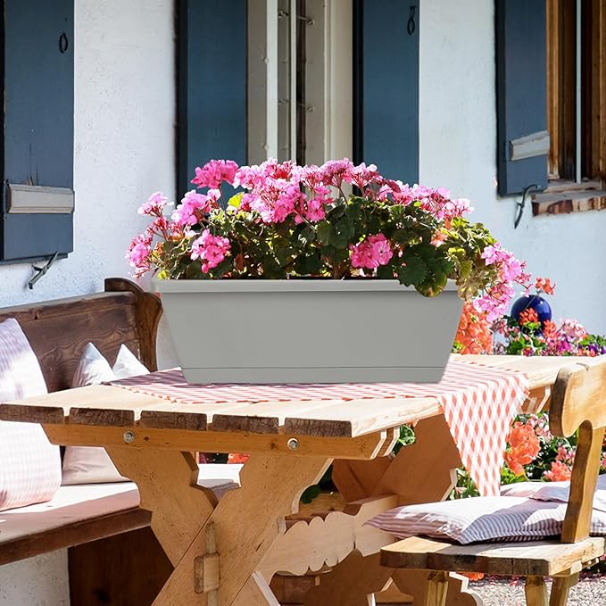 - 【Premium & Durable】Made of high-quality plastic, this window box planter is sturdy, wear-resistant and durable. It can be exposed to light, wind, and sunlight for long periods of time, with a lifespan of decades. It is an excellent planter box for both indoor and outdoor.