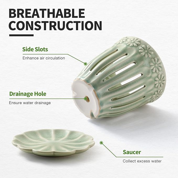- 【Elegant Design】Unique carved patterns make this orchid pot stand out. Fully glazed with improved air circulation through aeration holes on the front and back.