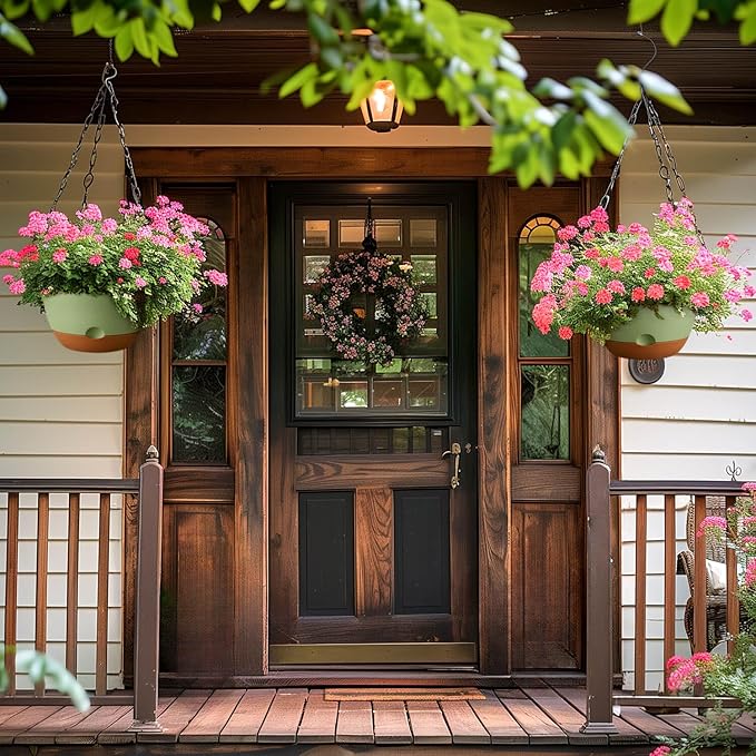 - 【Thicken Material 10 inch Hanging Plant Pots】Our plant hanging basket crafted from sturdy plastic, these 10 inch hanging planters withstand various harsh weather conditions for extended periods, ensuring planters withstand various climates and temperatures without fading or cracking, even during prolonged outdoor use. Lightweight and versatile self watering wall planter, each hanging baskets for plants set comes with two S-shaped hooks for easy installation.