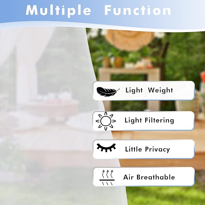 - Waterproof Polyester Fabric - Made with high quality polyester voile fabric that is waterproof and weather-resistant. These outside curtains are designed to provide long-lasting protection against strong sunlight, UV rays.