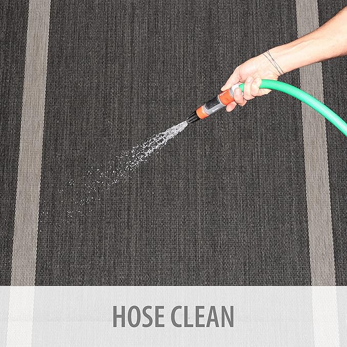 - [ WASHABLE: ] You can vacuum with a vacuum cleaner indoors and you can wash with a hose outdoors. To wash an outdoor rug, spray the surface with a 5-1 mixture of mild dish soap and water and then rise with a hose.