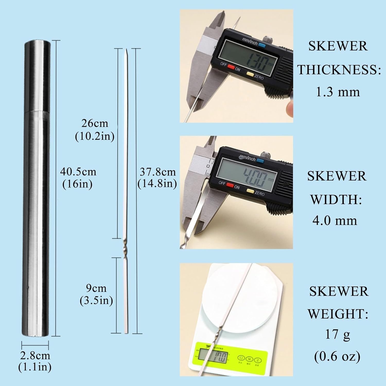 - 【Ergonomic Handle Design and Easy for Storage】These metal skewers come with an ergonomic handle design for comfortable grip, ensuring a non-slip and convenient barbecue experience. They are also designed for easy storage. Additionally, our kabob skewers for grilling come with a stainless steel storage tube, keeping the skewers dry and clean, making them easy to carry and store.
