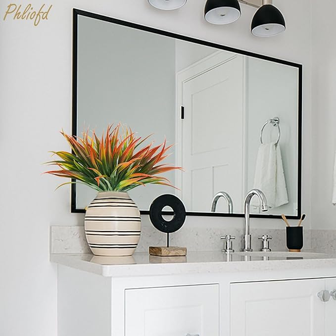 16Pcs Artificial Grass Fake Plants 17.3in Outdoor Plastic Plants UV Resistant Greenery Fake Grass for Home Window Garden Patio Hanging Planter Pathway Front Porch Décor Red