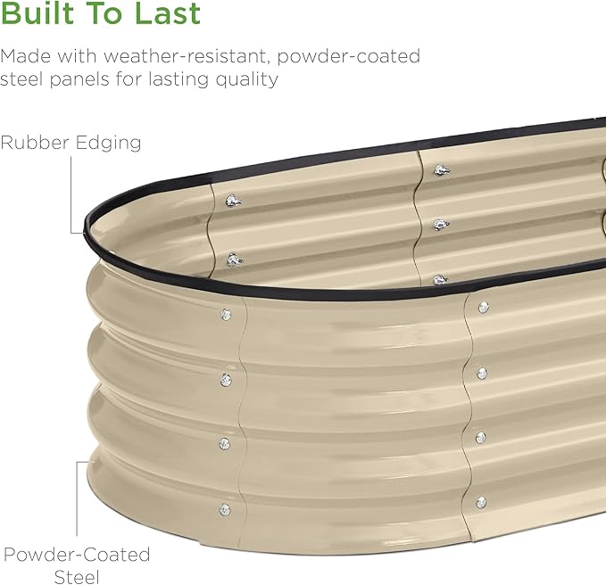 Best Choice Products 4x2x1ft Outdoor Metal Raised Garden Bed, Oval Deep Root Planter Box for Vegetables, Flowers, Herbs, and Succulents w/ 51 Gallon Capacity, Rubber Edge Guard - Beige