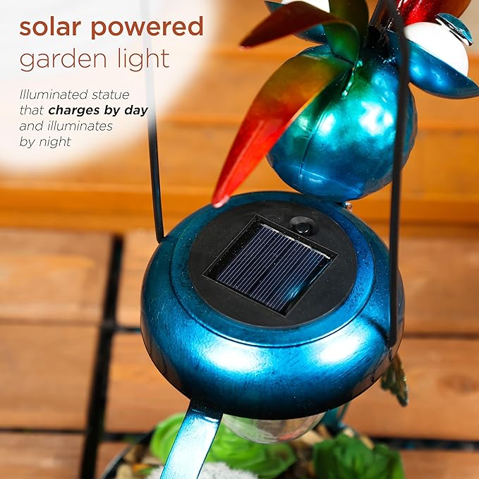 - SOLAR POWERED GARDEN LIGHT: Bring colorful whimsy to your outdoor space with this illuminated statue that charges by day and illuminates by night, making it an energy-efficient option