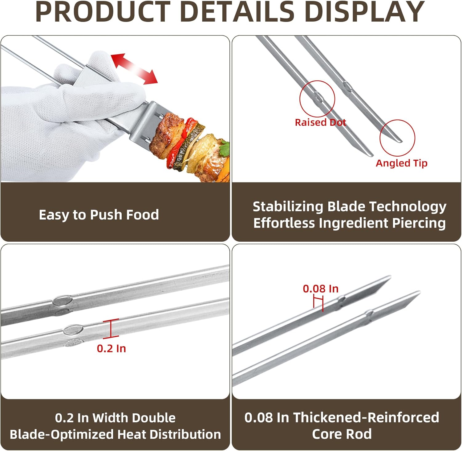 - 【13" Versatile Grilling Length】 Our precision-engineered 13-inch skewers fit most standard grills, offering optimal heat distance for safe handling. The length accommodates generous food portions while keeping hands comfortably away from flames. Effortless flipping and multi-skewer sets make them ideal for group cookouts.