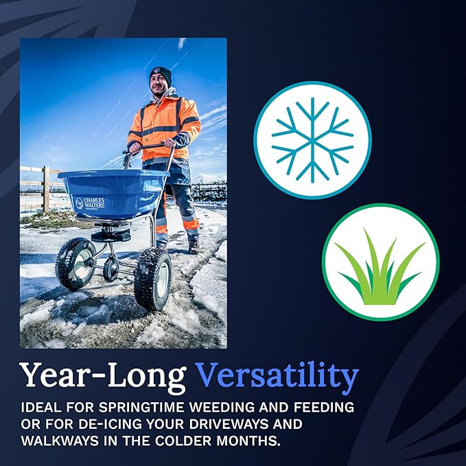 Charles Walters Equipment CW2800S Landscape Rated Broadcast Spreader with Stainless Steel Frame for Spreading Fertilizer and Ice Melt on Lawns, Walkways, and Driveways, 80lbs Capacity, 38" x 33"