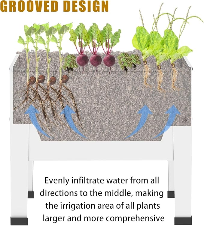 - IRRIGATION SYSTEM: The bottom of the raised garden bed has a middle groove type to allow water to penetrate evenly, ensuring that the plants get sufficient and reasonable watering.