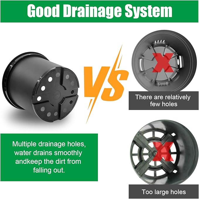 - Drainage Holes:Each pot has drainage holes to prevent water buildup that could cause root rot;helps maintain proper moisture levels for plant health