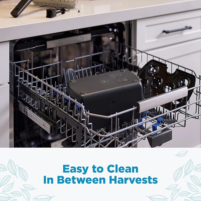 - NEW FEATURES: In addition to its trendy aesthetics, the targeted grow light means more light on your plants and less on the surrounding area, plus the Harvest 2.0 features a one-button control nutrient reminder, and a dark grow deck to help prevent algae growth in the reservoir