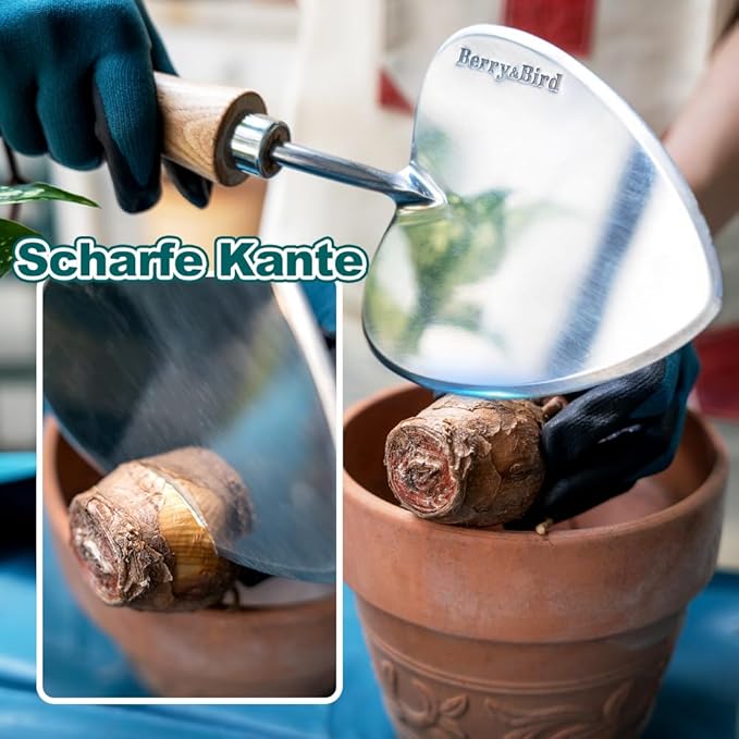 Berry&Bird Perennial Trowel, Oversized Garden Potting Trowel with Sharp Blade Wood Hand Shovel, Stainless Steel Planting Trowel Gardening Tool for Roots,Planting,Digging,Transplanting and Cutting