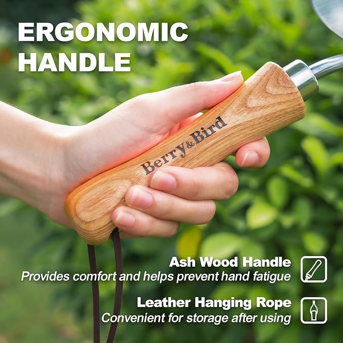 Berry&Bird Perennial Trowel, Oversized Garden Potting Trowel with Sharp Blade Wood Hand Shovel, Stainless Steel Planting Trowel Gardening Tool for Roots,Planting,Digging,Transplanting and Cutting