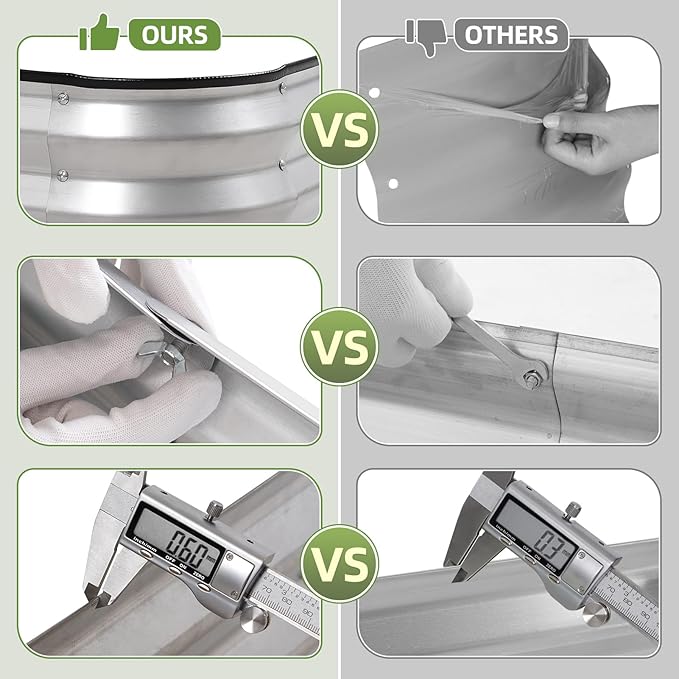 - 【 Not easy to deform】 Our oval outdoor garden box is made of 0.6 mm double-layer corrosion-resistant galvanized sheet, and the surface is coated with anti-rust coating to ensure long-term use. Equipped with optimized support rods, easy to install and flexible, durable and not easy to break, providing excellent support after soil filling.
