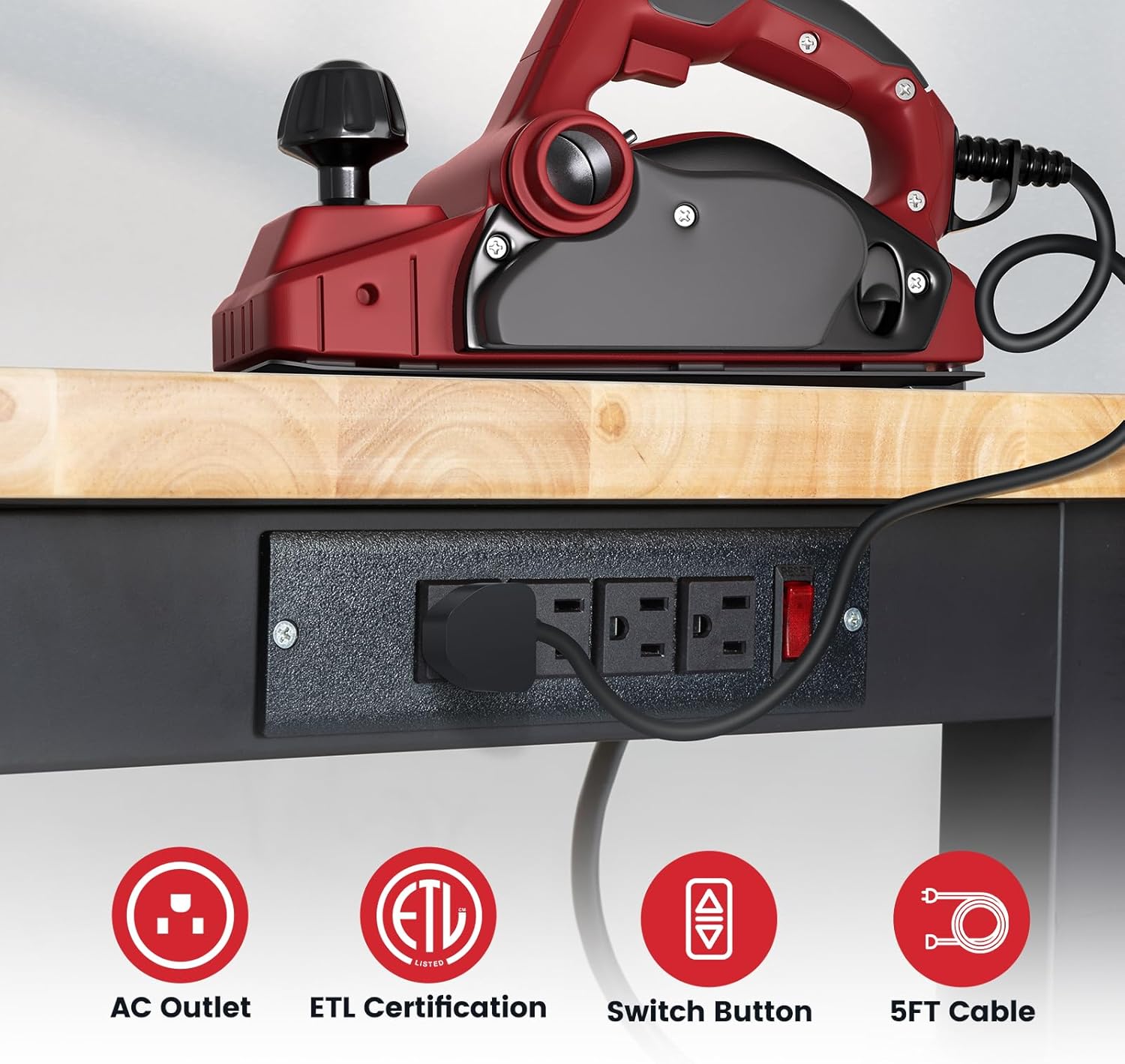 - ๐๐๐ ๐๐๐ซ๐ญ๐ข๐๐ข๐๐ ๐ฉ๐จ๐ฐ๐๐ซ ๐จ๐ฎ๐ญ๐ฅ๐๐ญ๐ฌ with buttons,conveniently access to power tools. ๐๐จ๐ซ๐ ๐๐ซ๐ ๐๐ง๐ข๐ณ๐๐ซ organize the power cord for more neat. ๐๐ง๐๐๐ซ ๐ญ๐๐๐ฅ๐ ๐ฌ๐ก๐๐ฅ๐ and Three 16x24 inch ๐๐๐ ๐๐จ๐๐ซ๐ increase storage space. 3mm 48x20 inch ๐ซ๐ฎ๐๐๐๐ซ ๐ฉ๐๐ for protecting desktop.