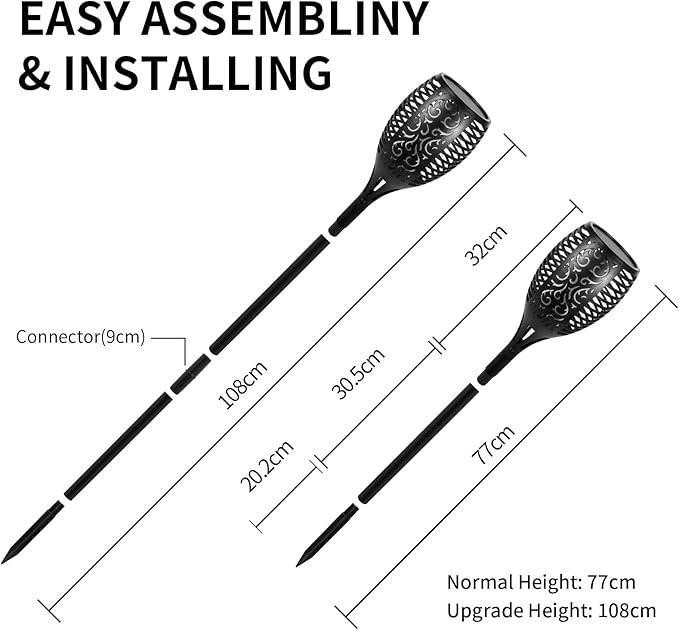 - Gorgeous Dancing Flames: Our self-charging solar lamps charge by day and turn on automatically at night. They have 3 beautiful modes; Flickering Flames, Slow Fade from On/Off/On, or Full Brightness. They are gorgeous and attractive and look fantastic as decorative outdoor lighting. Whether lining pathways and driveways, placed in gardens, or just used during the holidays such as Halloween or Christmas, these light can do it all