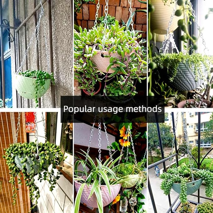 - ✅HANGING PLANTER CHAIN: You can even brush hanging chain with nail polish or coating to turn its original color into the other color you like. hanging chains with hooks hanging iron chain hook possesses the elemental characteristics of durability, versatility, flexibility and adjustability, chain hangers for plants