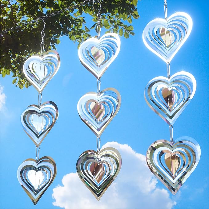 Bird Deterrents for Outside, Reflective 3D Stainless Steel Wind Spinners, Garden Decor, Bird Scare Devices to Keep Woodpeckers, Pigeons Away from Your House, Patio, Orchards