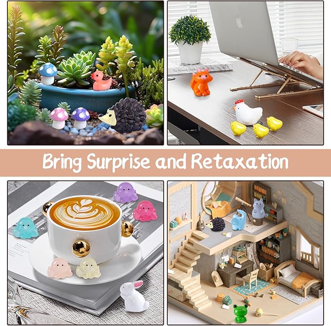 - đąăVarious Applicationă: These miniature garden animal models are ideal for embellishing miniature fairy tale gardens, miniature houses, dollhouses, aquariums, desk decorations, potted plants, moss landscapes, and as party favors. Unleash your imagination to fully decorate the miniature landscape and enhance the joy of your garden!