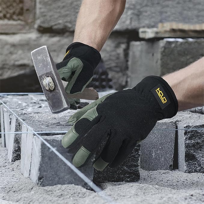 - Breathable & Reinforced Design: Featuring stretchable spandex backing, these leather work gloves keep your hands cool, dry, and comfortable while providing extra durability with reinforced fingernail patches