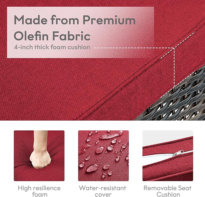 - Sturdy Wicker Furniture: Outdoor patio furniture sets are made of weather-resistant PE wicker that is extremely durable and resistant to water and fading. It has various ways to suit different spaces and make this wicker set great for your garden, patio, deck, poolside, porch, hallway, balcony and backyard.