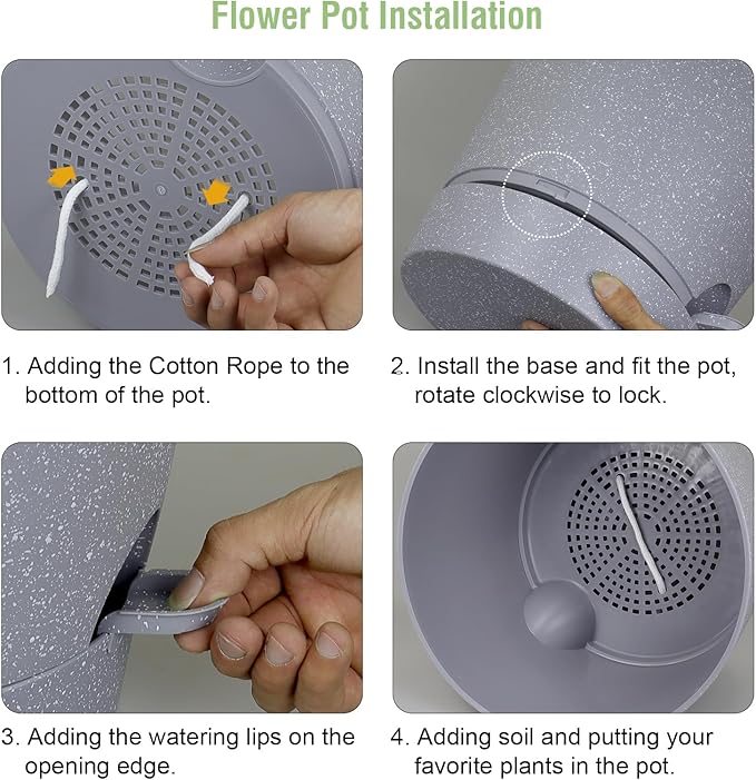 - 【Self-Watering Design】 Self-watering pots is includes a water reservoir at the bottom of the planter. This flower pots automatically supplies water to your plants as needed by a cotton rope, reducing the frequency of watering and ensuring your plants never go thirsty. The reservoir design also helps maintain a consistent moisture level, fostering optimal growth conditions.