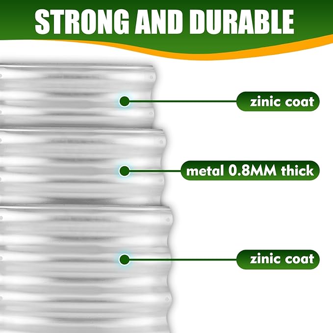 - Durable Construction: Made from 0.8mm thick galvanized steel with multi-layer eco-friendly paint coatings for long-lasting use.All galvanized steel boards are locked and spliced with strong screws and butterfly nuts
