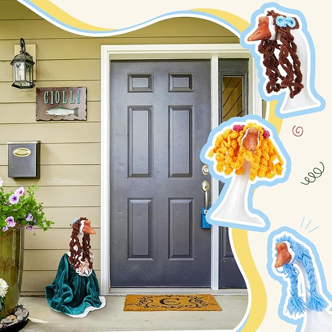 - Porch Goose Accessories: elevate your outdoor decor with our porch goose braid wigs, offering 3 charming styles to adorn your porch goose, garden goose, or lawn goose; Each wig features delightful braids, cute bows, or wavy designs, adding whimsy and personality to your outdoor space