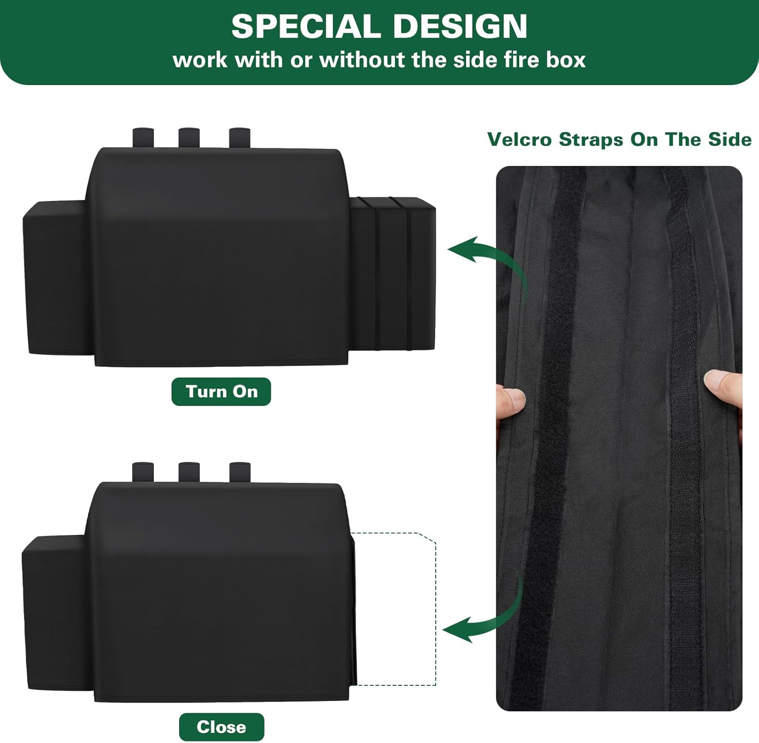 - 【Expandable Design】Designed with adjustable magic bands in the side of the charcoal grill cover, it can be expandable to fit grills with or without side fire box.