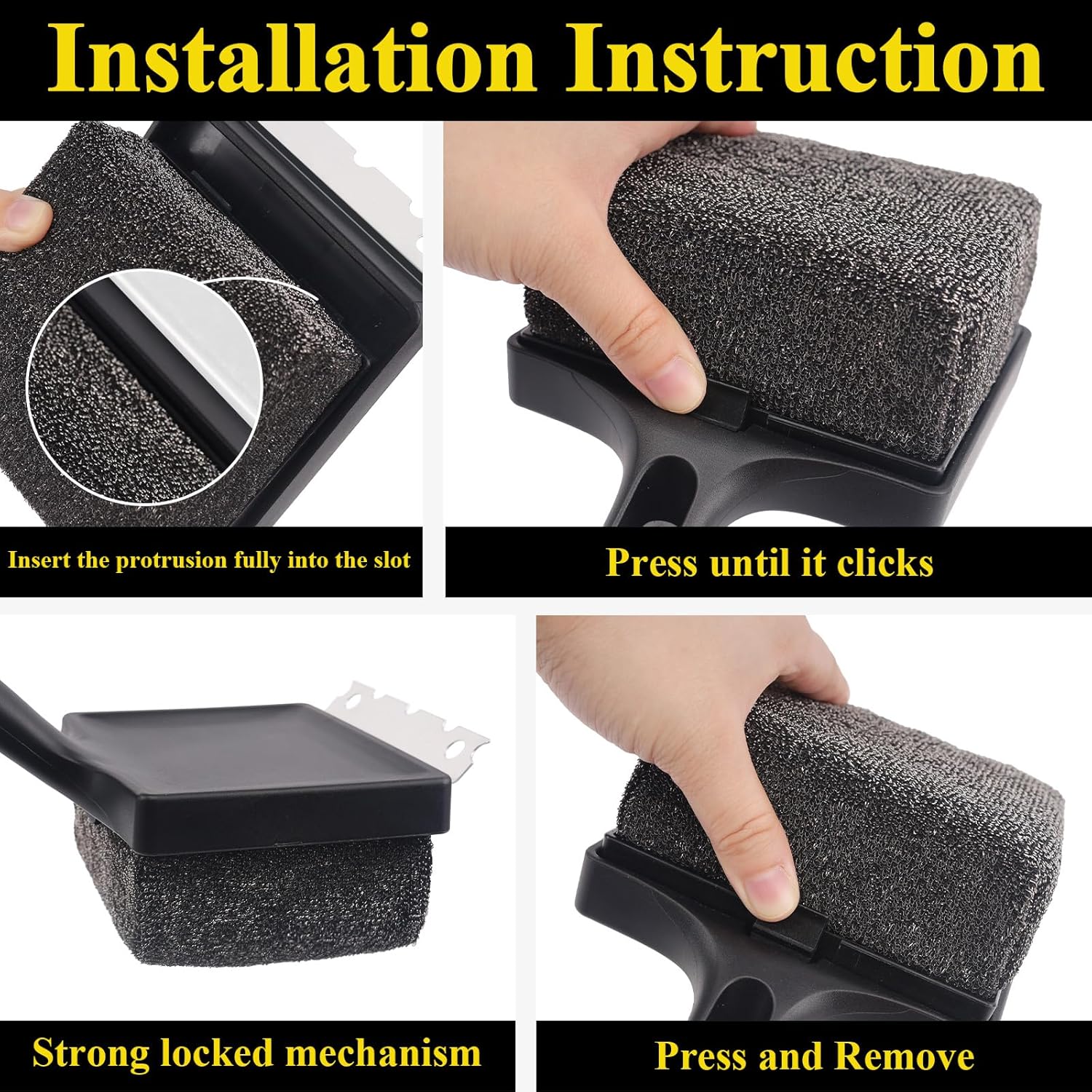 - [Easy to clean and Reusable] The brush cleaning head is removable and features a safety clip mechanism for greater stability on the handle. After use, you can remove the cleaning brush pad from the handle, put it in the dishwasher, and hang to dry.Enjoy a fun BBQ gathering with family and friends!