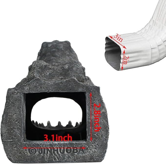 Alligator Downspout- Gutter Downspout Decorative-Funny Garden Decoration - Outdoor Splash Block Waterproof Resin Ornament for Lawn- 2""×3"" Downspout Extender Diverter, Gray