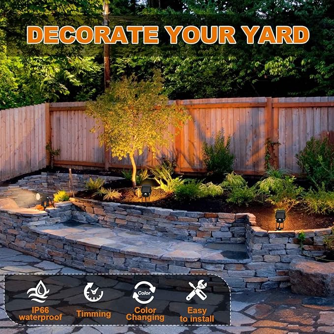 - 【Plug and Play, No Wiring Required】Our LED landscape lights are super easy to use, no need to buy any extra accessories for these spot lights outdoor, just plug in and choose the color lighting you like.